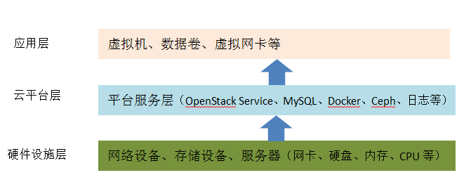 • 云平台层:日志、数据库、消息队列、操作系统、OpenStack服务、Ceph存储、Docker容器、系统和应用负载等。