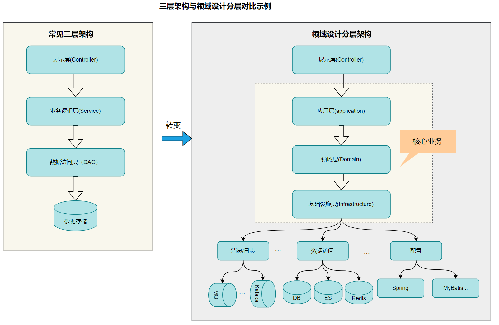 - Domain层主要是通过领域服务(Domain Service),领域对象(Domain Object)的交互,对上层提供业务逻辑的处理,然后调用下层Repository做持久化处理;