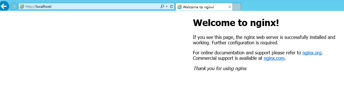 双击nginx.exe运行nginx,在浏览器输入http://localhost查看效果如下: