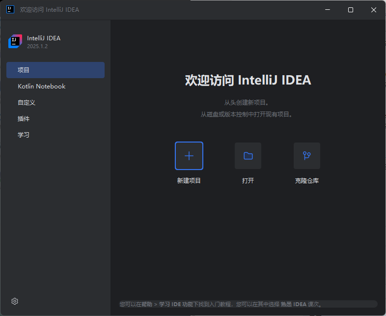 首先安装好IDEA后,打开软件,但是不要进入到软件内部,进入到如下窗口即可退出。