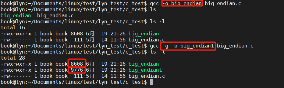 在linux下对于单个c/c++文件编译通常就是加-o 进行编译成可执行文件,但是我们如果需要要调试,则需要加一个 -g 用来向编译器进行表明该程序需要编译成可以gdb调试的代码,加上编译信息,生成的执行文件就会变大,如图所示。所以我们只在调试的时候进行 -g 编译。Java调试的时候也是类似后续也说一哈java的Linux。