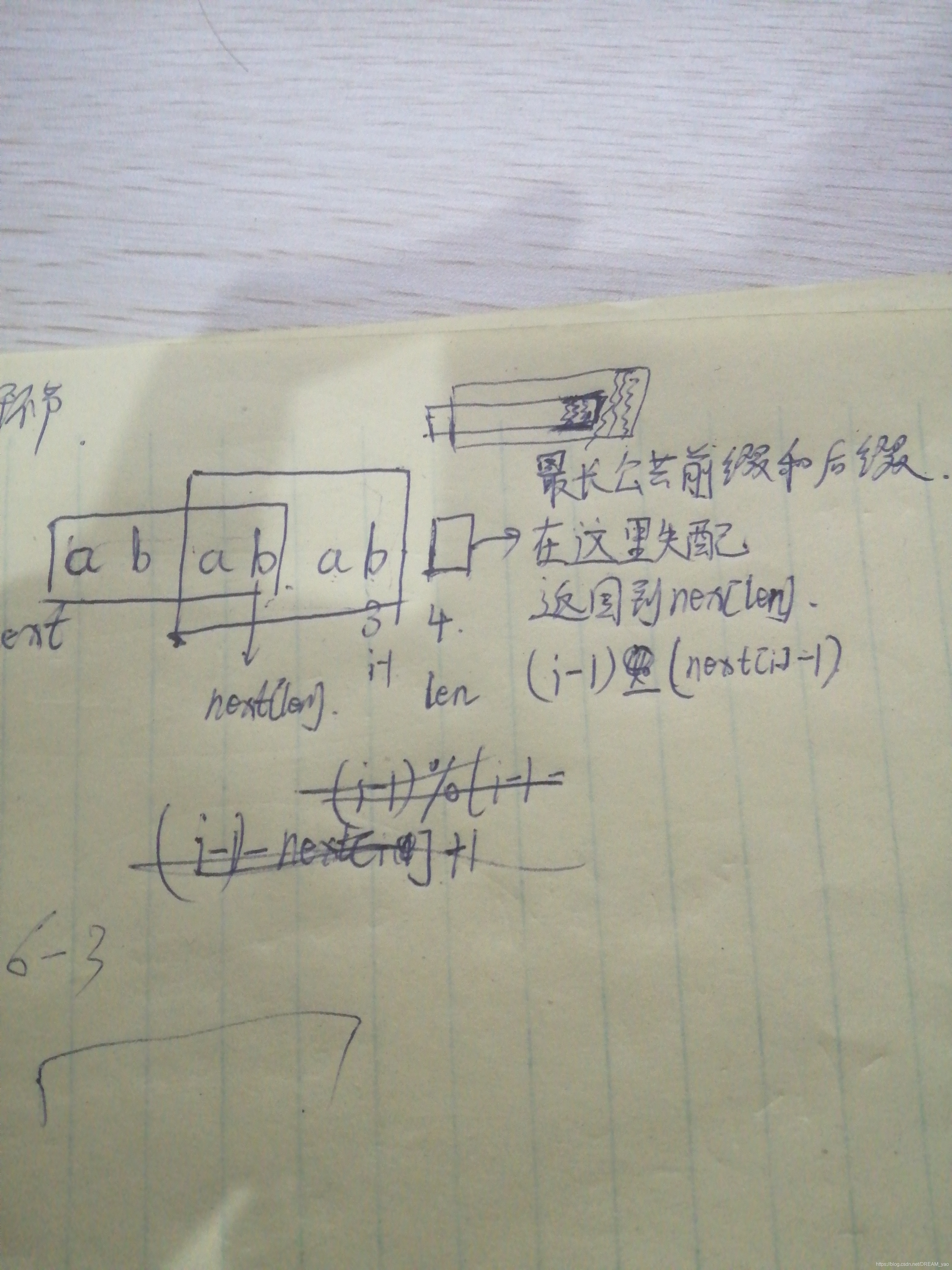 问题来了,求next [ ]数组,它可以列举出以t[0]开头的所有子串,求这些子串的前后缀最长相同字符串的长度,然后整体向右移动一位,开头为-1。