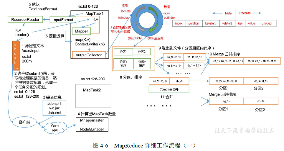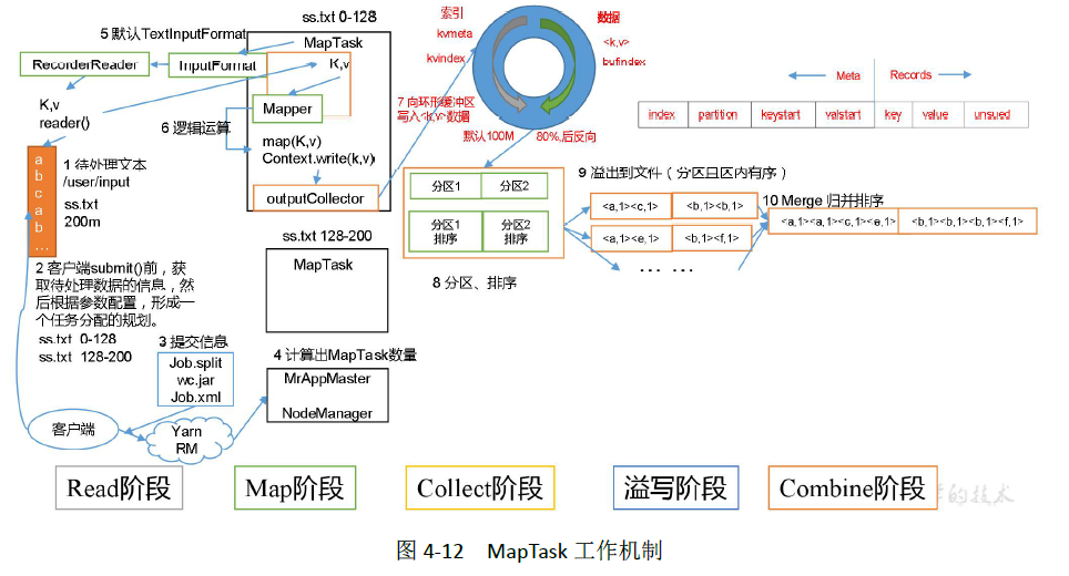 1,MapTask收集map方法输出的kv对,放到环形内存缓冲区(默认100M)