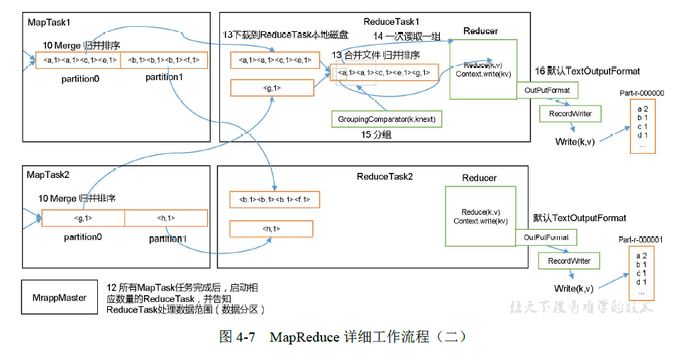 7,合并成大文件后shuffle过程也就结束了,后面进行reducetask的逻辑运算(调用用户的reduce())