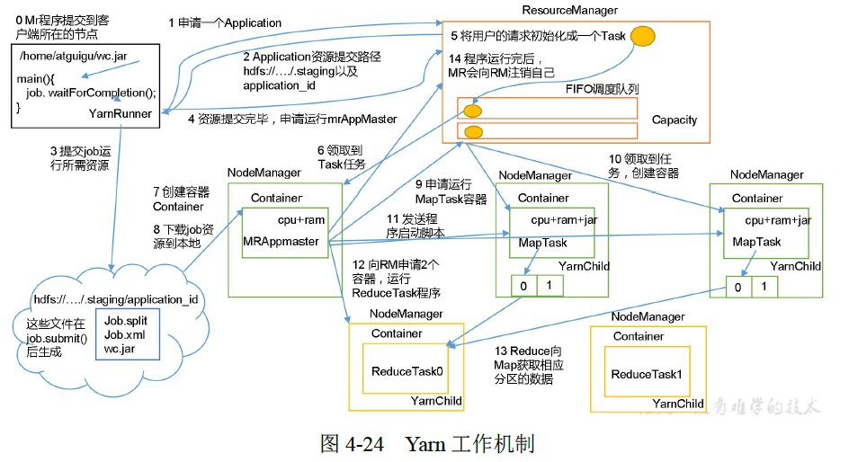 主要内容:mapreduce整体工作机制介绍:wordcont的编写(map逻辑 和 reduce逻辑)与提交集群运行:调度平台yarn的快速理解以及yarn集群的安装与启动. 1.mapreduce ...