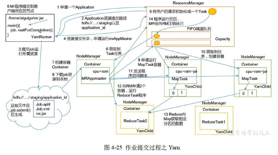 - 公平调度,多个任务队列,每个任务队列内的job共享队列的资源,支持抢占,允许调度器终止那些资源超过了公平共享份额的队列的容器(抢占会降低效率)