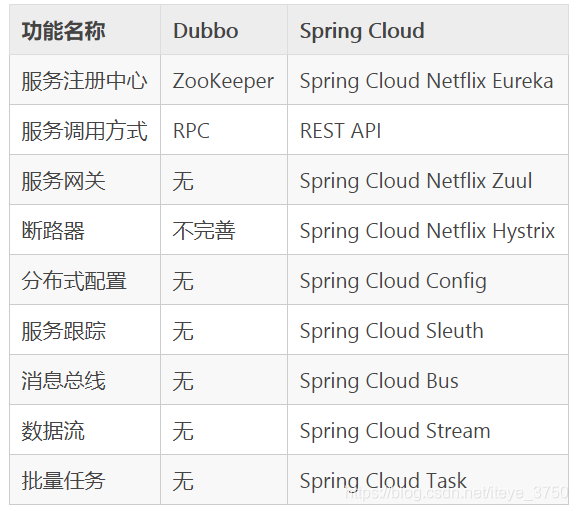 (3)java Spring Cloud+Spring boot+mybatis企业快速开发架构之SpringCloud-Spring Cloud和Dubbo的区别及各自的优缺点