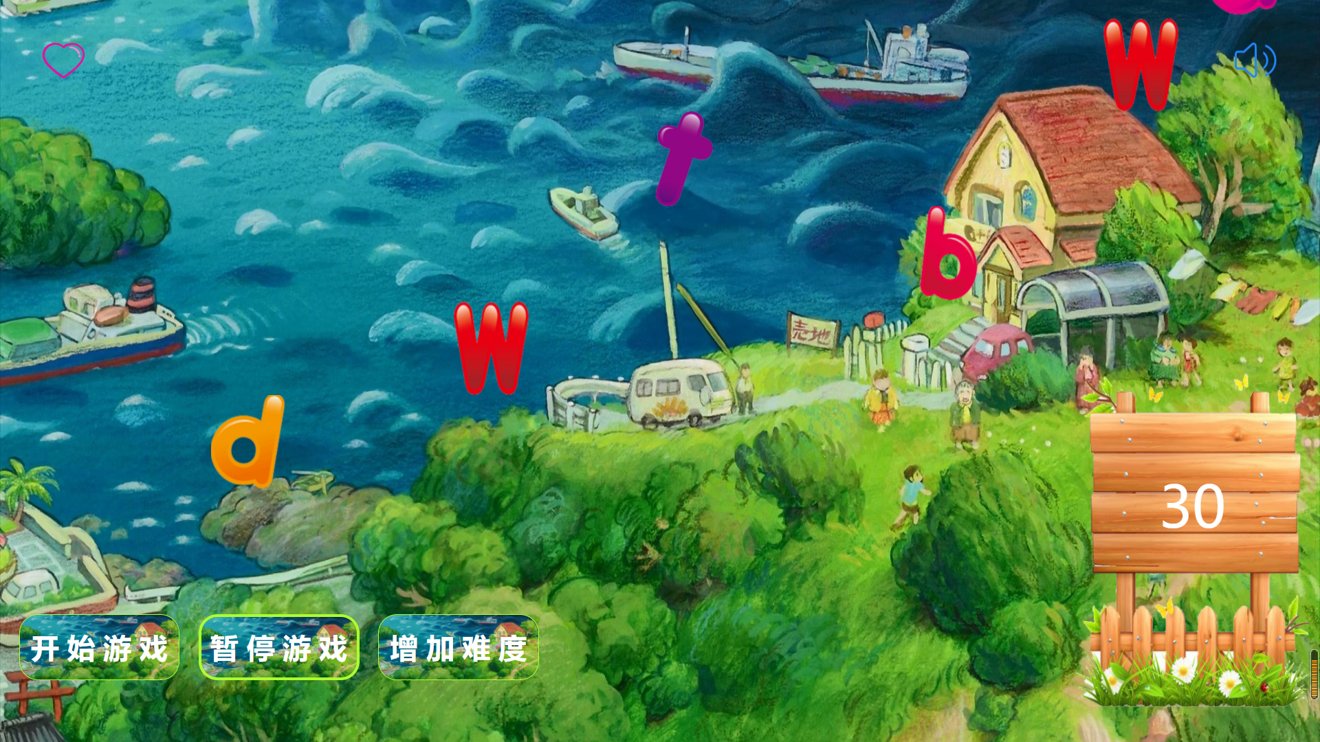 var off_x; //横坐标 var count=0; //总分 var speed=5000; //速度,默认是5秒. var keyErro=0; //输入错误次数 var keyRight= ...