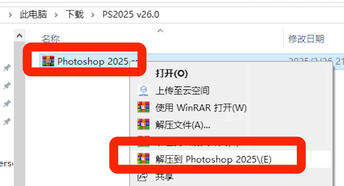 2. 解压Photoshop 2025安装包