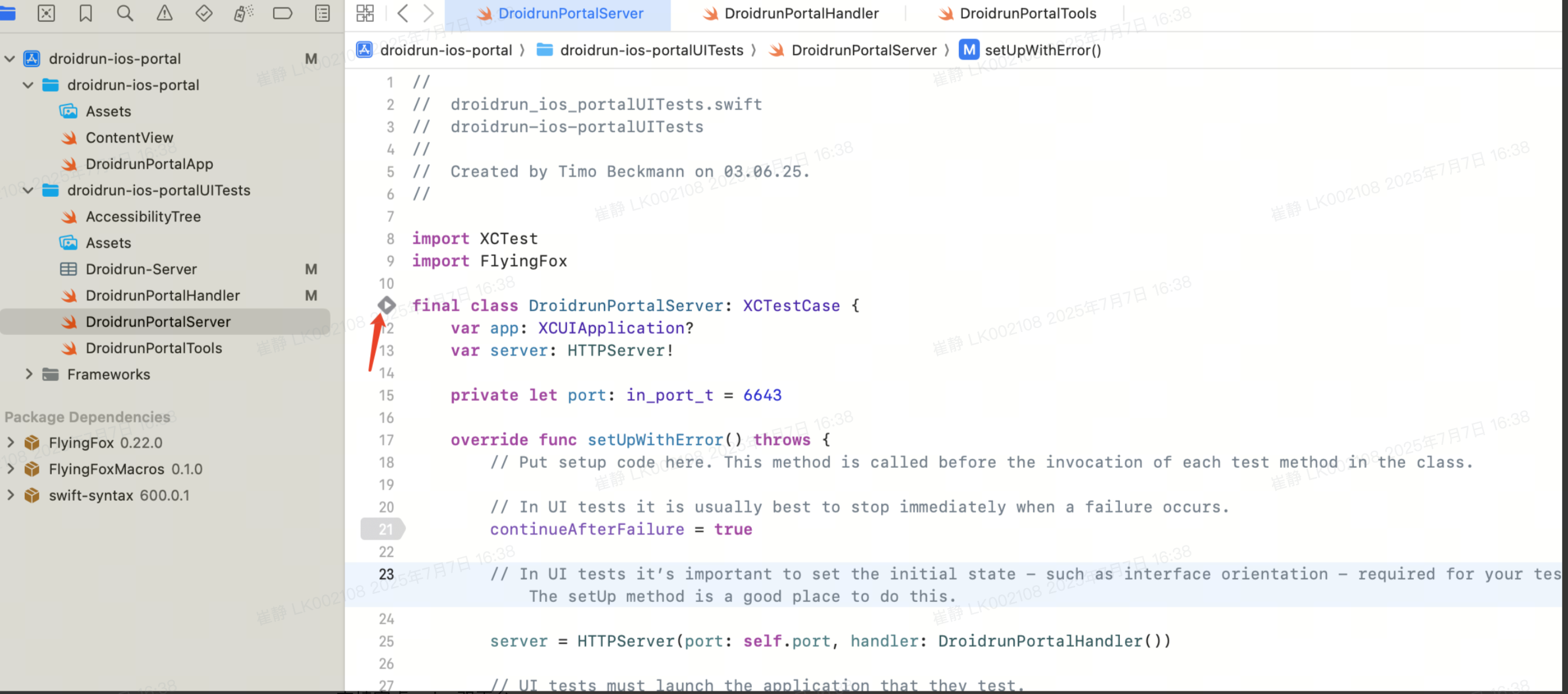 1、安装ios-portal,拉取代码,使用xcode打开droidrun-ios-portal.xcodeproj,编译安装droidrun portal APP