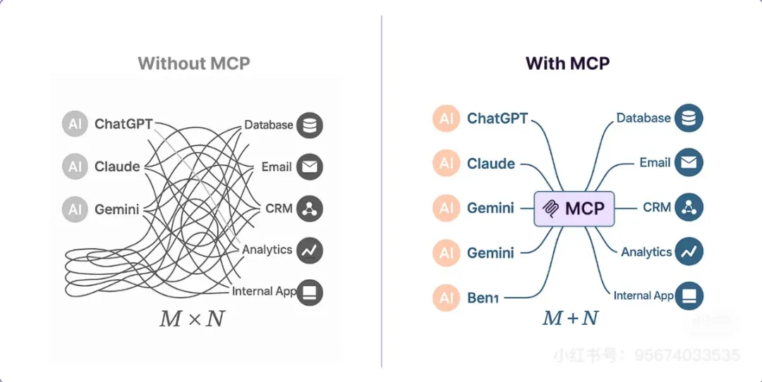 - 有了 MCP后,M + N