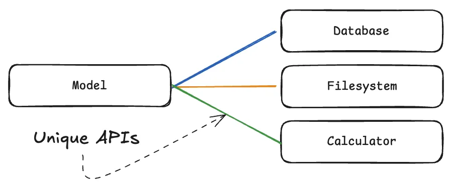 每一个 AI 应用都需要为每个工具或数据源编写独立的对接逻辑。