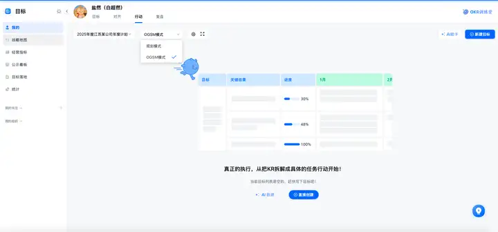 原“规划视图”已统一升级为“行动”模块,全面引入了时下最主流的战略执行框架——OGSM!!!