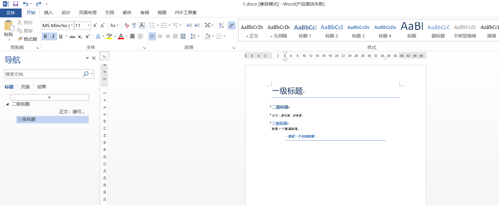 比如:分别写入一级标题、二级标题、三级标题(等级1-9 )