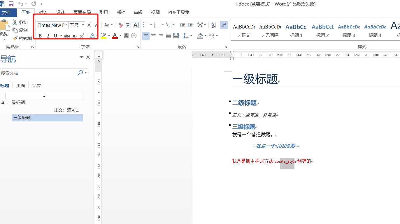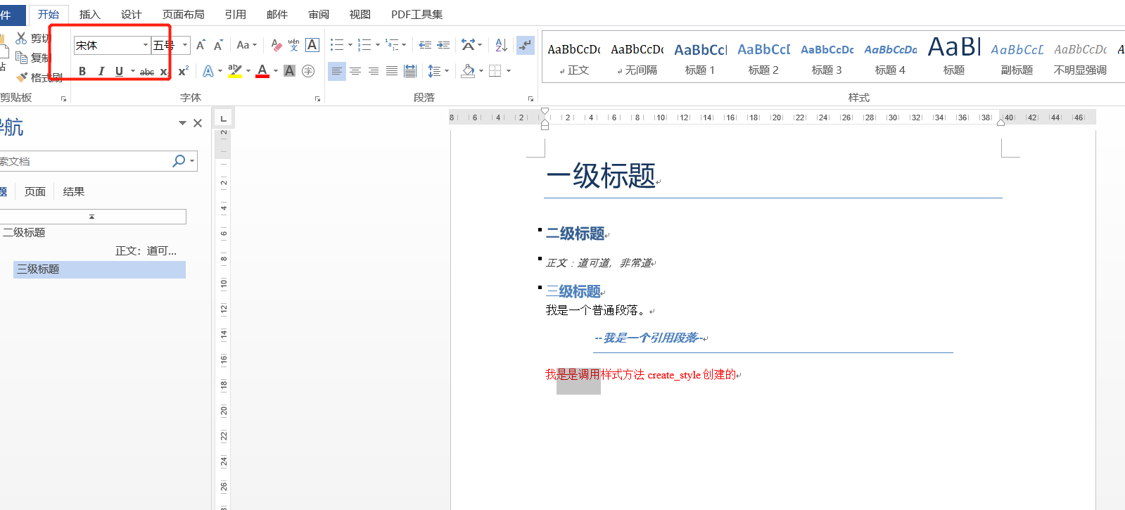 doc.add_paragraph('我是是调用样式方法create_style创建的',style_paragraph)