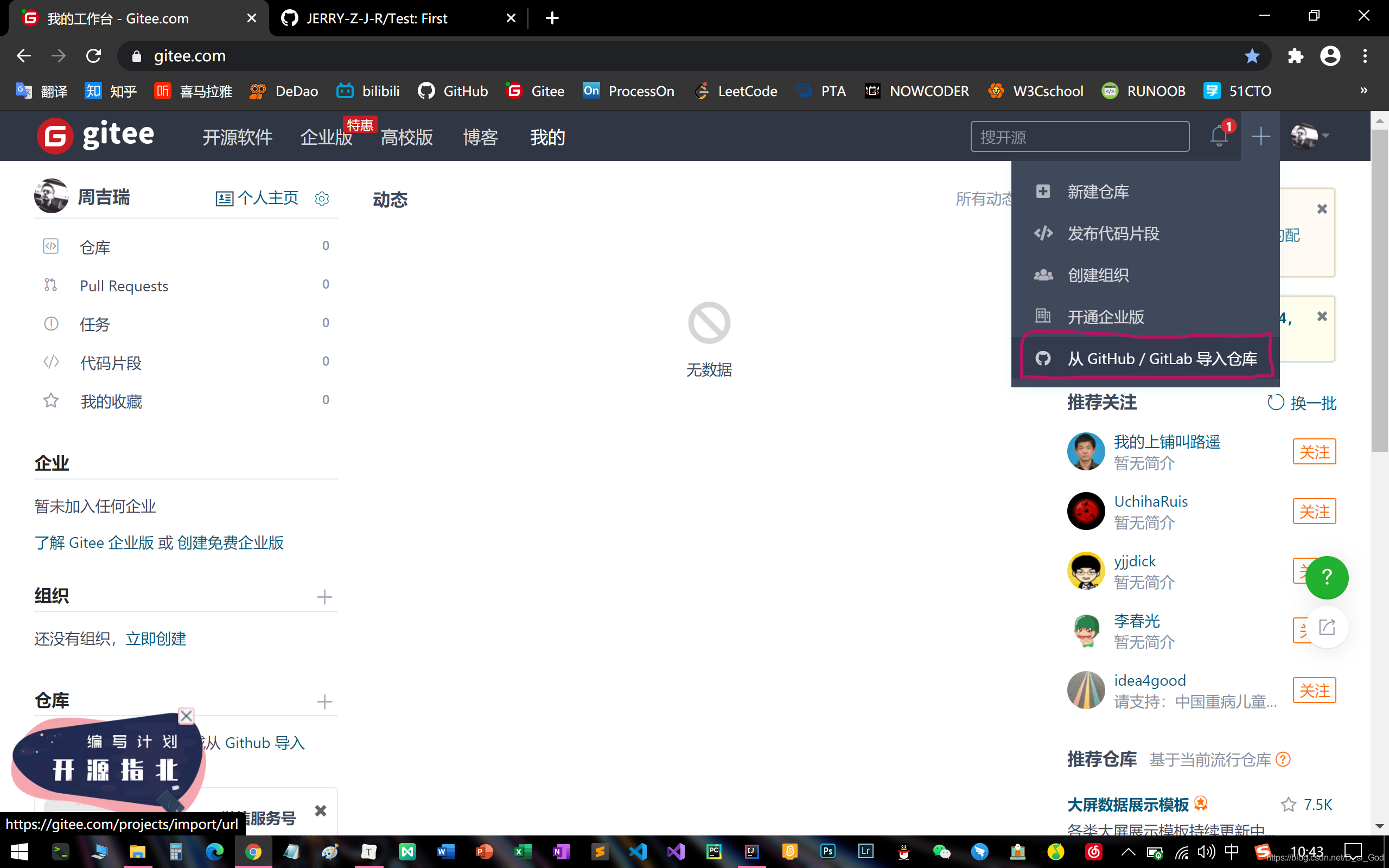二、利用Gitee转接GitHub仓库