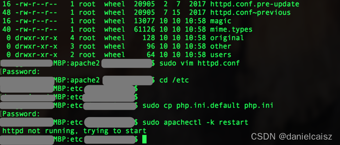 // 提示:下面这行代码不要打,如果后续操作出现错误!才需要使用以下命令,恢复备份过的httpd.conf 文件(董铂然博客园)