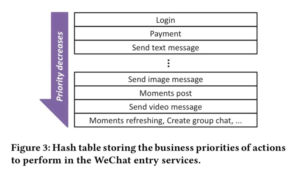 哈希表存储了在微信入口服务中执行的操作的业务优先级