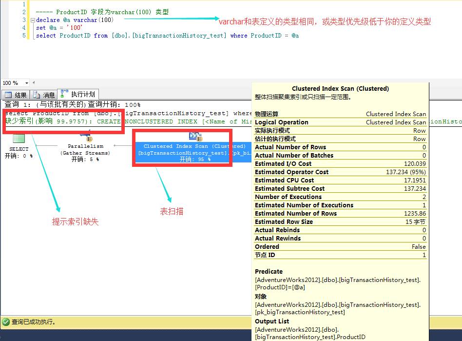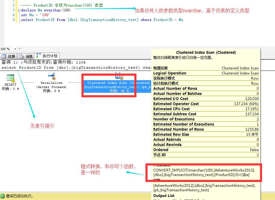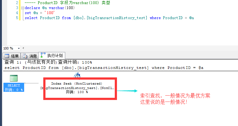 高能预警:这里需要你的条件可以用索引!比如 你的语句中 索引列不能带函数,不能参与计算如 where productID/2 = @a ,不能有隐式转换等!