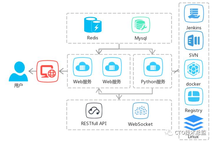 l 底层服务由Python开发并对外暴露接口,实现对SVN、Jenkins、docker等终端服务调用;