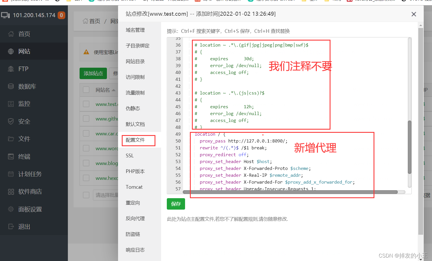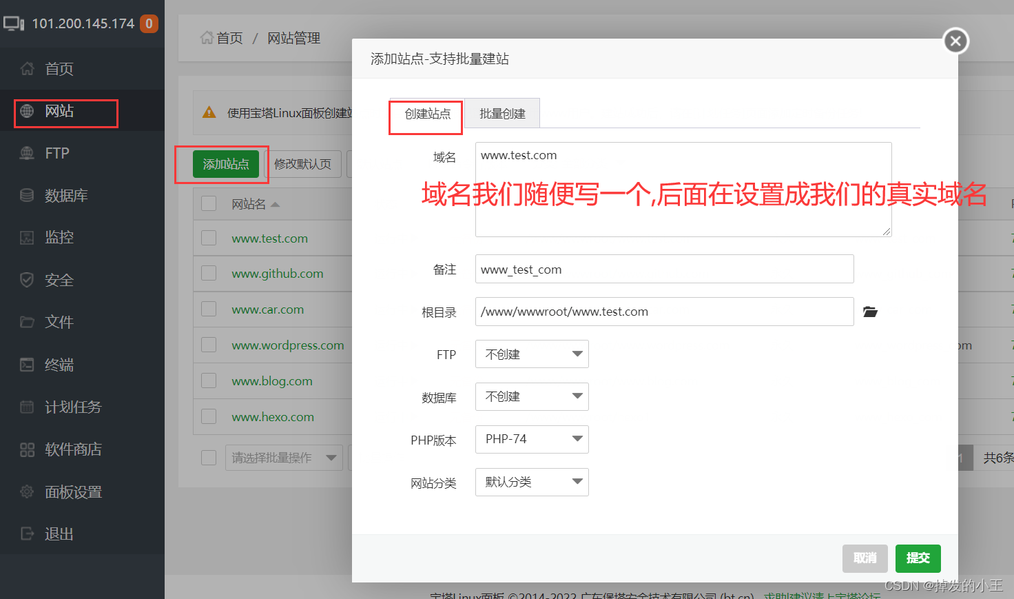 1. 打开宝塔,新建站点