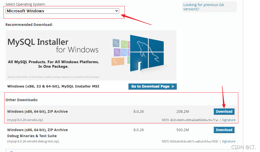 1.MySQL 8.0.26 下载 官方网站下载 MySQL 8.0.26 安装包,下载地址: https://downloads.mysql.com/archives/community/ 需要注意 ...