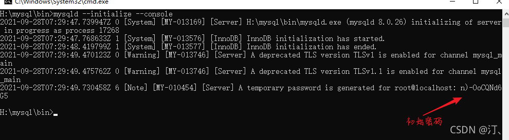 注意要修改basedir和datadir部分。之后,在bin文件夹下打开命令行,输入以下命令,进行数据库初始化