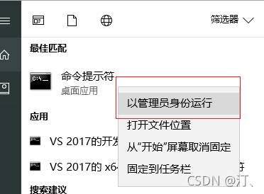 打开cmd.exe程序的时候选择“用管理员身份打开”。