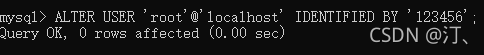 ALTER USER 'root'@'localhost' IDENTIFIED BY '123456';