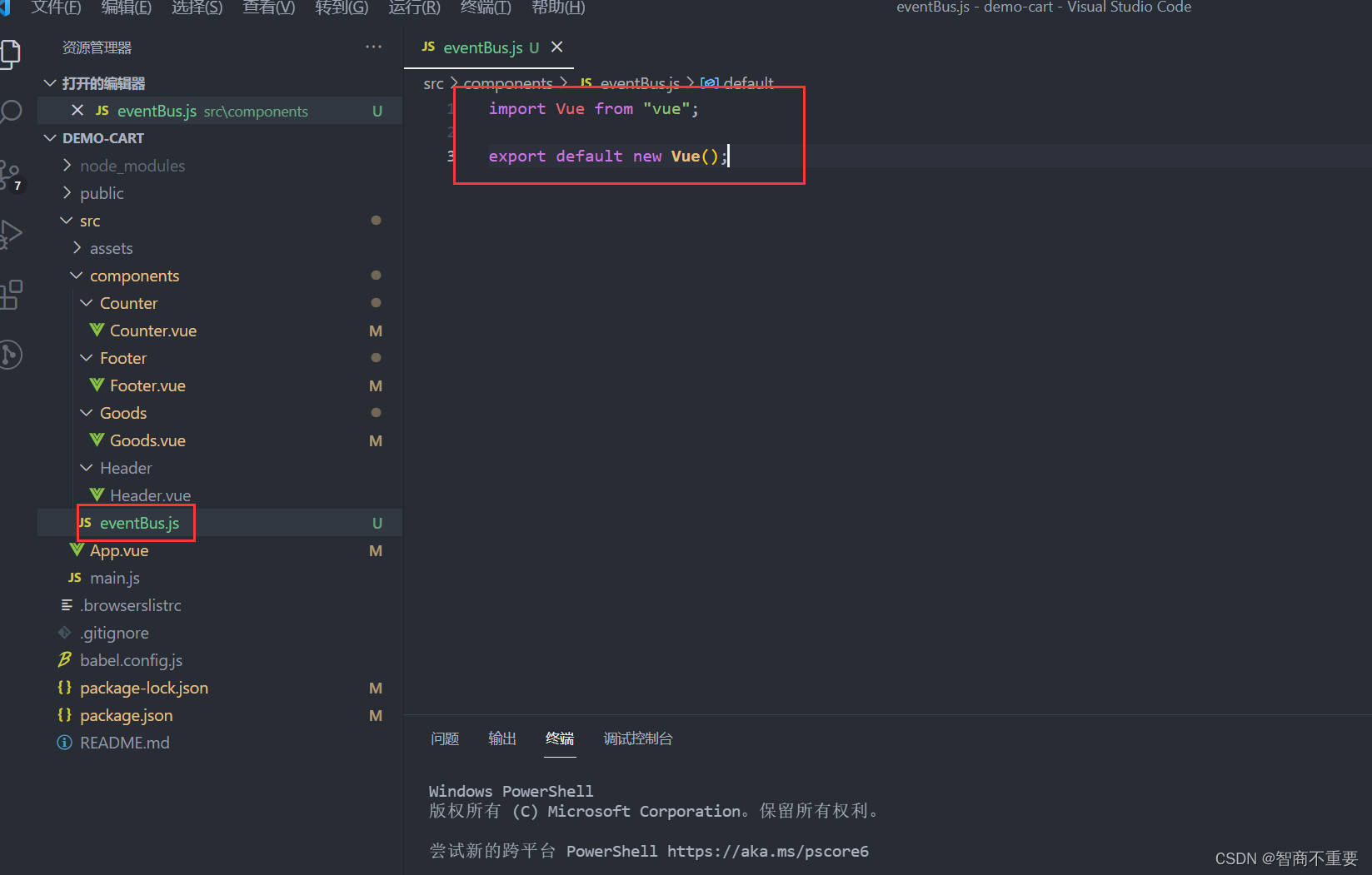 在eventBus.js里面先导入vue在共享一个vue实例。