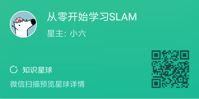 最近从零开始学习SLAM学习知识星球限时3天优惠,每天只需0.3元,加入3天内不满意全额退款。关于星球的详细介绍见:从零开始学习SLAM,欢迎加入星球学习、交流、讨论,一起进步!早就是优势!