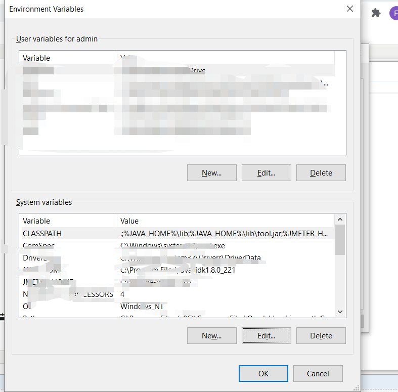 (2)配置classpath变量,没有的话也要按照上面步骤进行新建,有的话直接进行选中,点击编辑即可。变量值固定为:%JMETER_HOME%\lib\ext\ApacheJMeter_core.jar;%JMETER_HOME%\lib\jorphan.jar;%JMETER_HOME%\lib/logkit-2.0.jar;