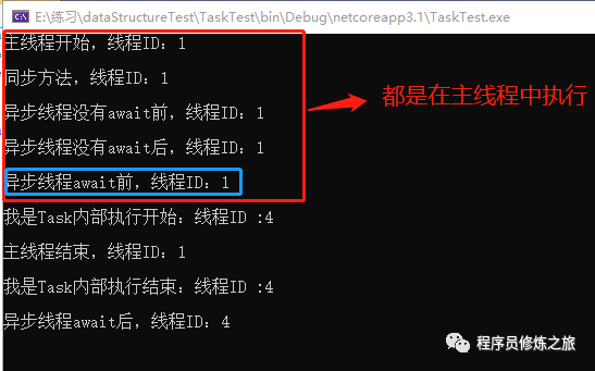 Console.WriteLine($"同步方法,线程ID:{Thread.CurrentThread.ManagedThreadId}\n");