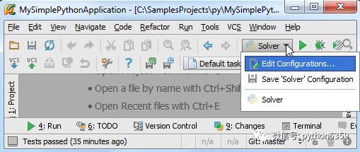 如果你仔细观察第一张图片就会发现,在组合框中根本就没有 run/debug的相关信息,知道第二张图片中它们才出现。这就意味着当执行运行/调试命令的时候,Solver脚本的run/debug配置文件才会自动生成,正如现在所显示的这样。