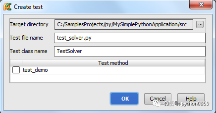 首先我们创建一个test实例。Pycharm提供了一种非常智能的创建测试代码的方法:单击选中类名然后按下Ctrl+Shift+T快捷键,或者在主菜单中选择Navigate → Test,如果test程序已存在,则会直接跳转到对应代码,否则创建它:按照系统提示进行操作,Pycharm会显示如下对话框: