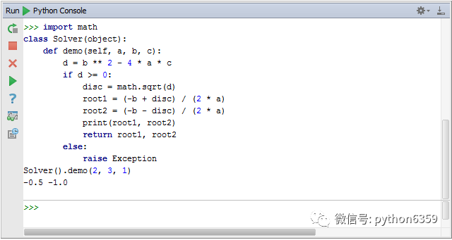单击Console选项卡使其前置:然后单击左侧工具栏中的命令符按钮,显示Python的命令提示符: