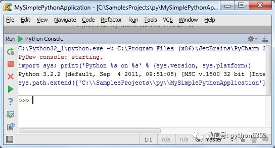最后,如果你更习惯工作于控制台环境下,也可以将Pycharm设置成为控制台模式。在主菜单中选择Tools → Run Python Console...来加载控制台:此时console窗口将会被激活,并显示为一个单独的窗口: