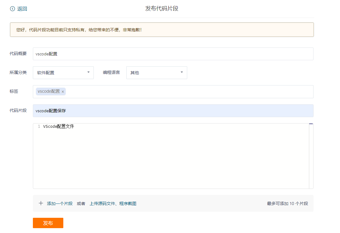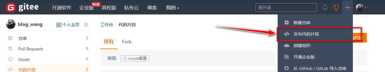 点击进入个人中心,选择发布代码片段