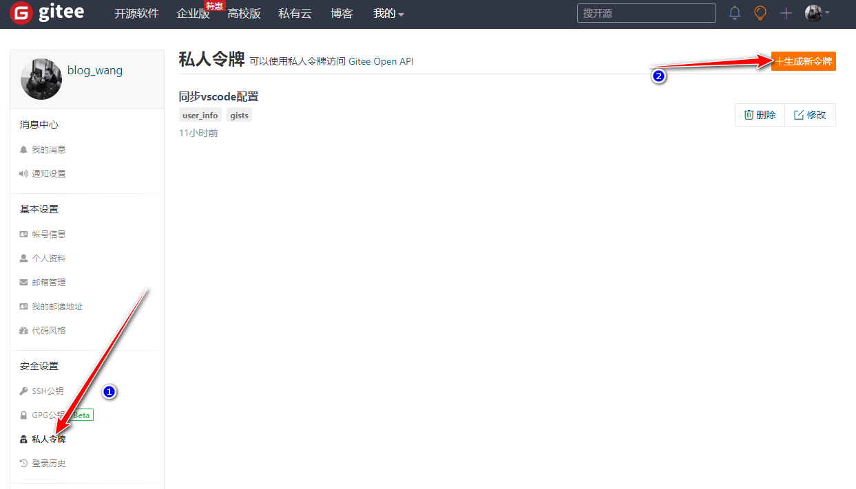 点击进入设置>–私人令牌>–生成新的令牌: