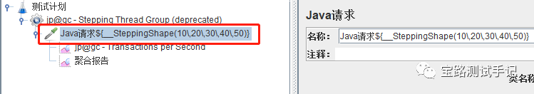 其实是这样的,最近包括以前都有同事问过宝路一个问题:JMeter测试计划中涉及到梯度压测时,整个测试计划执行完毕,聚合报告看的是整体的结果啊!并不能直观看到每个梯度下的吞吐量的值(虽然可以通过Transactions per Second插件估算大概值,这种估算方式感觉不是很友好),最初宝路是通过BeanShell 预处理程序来实现的,但这种方式不是特别完美(不推荐使用BeanShell,以后会给大家说明),因此SteppingShape诞生了。