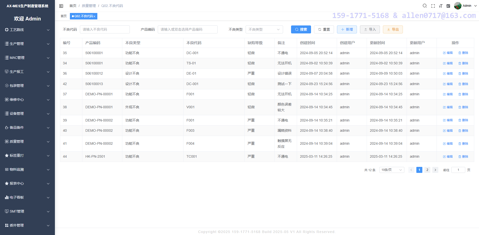品质部门在系统中定义不良类型(比如功能不良、外观不良、设计不良、来料不良等等)与不良代码,为了满足不同的客户需求,不良代码与产品编码组合唯一,在记录不良的过程中通过不良代码来标识不良情况,有助于品质人员对不良情况进行汇总与分析。