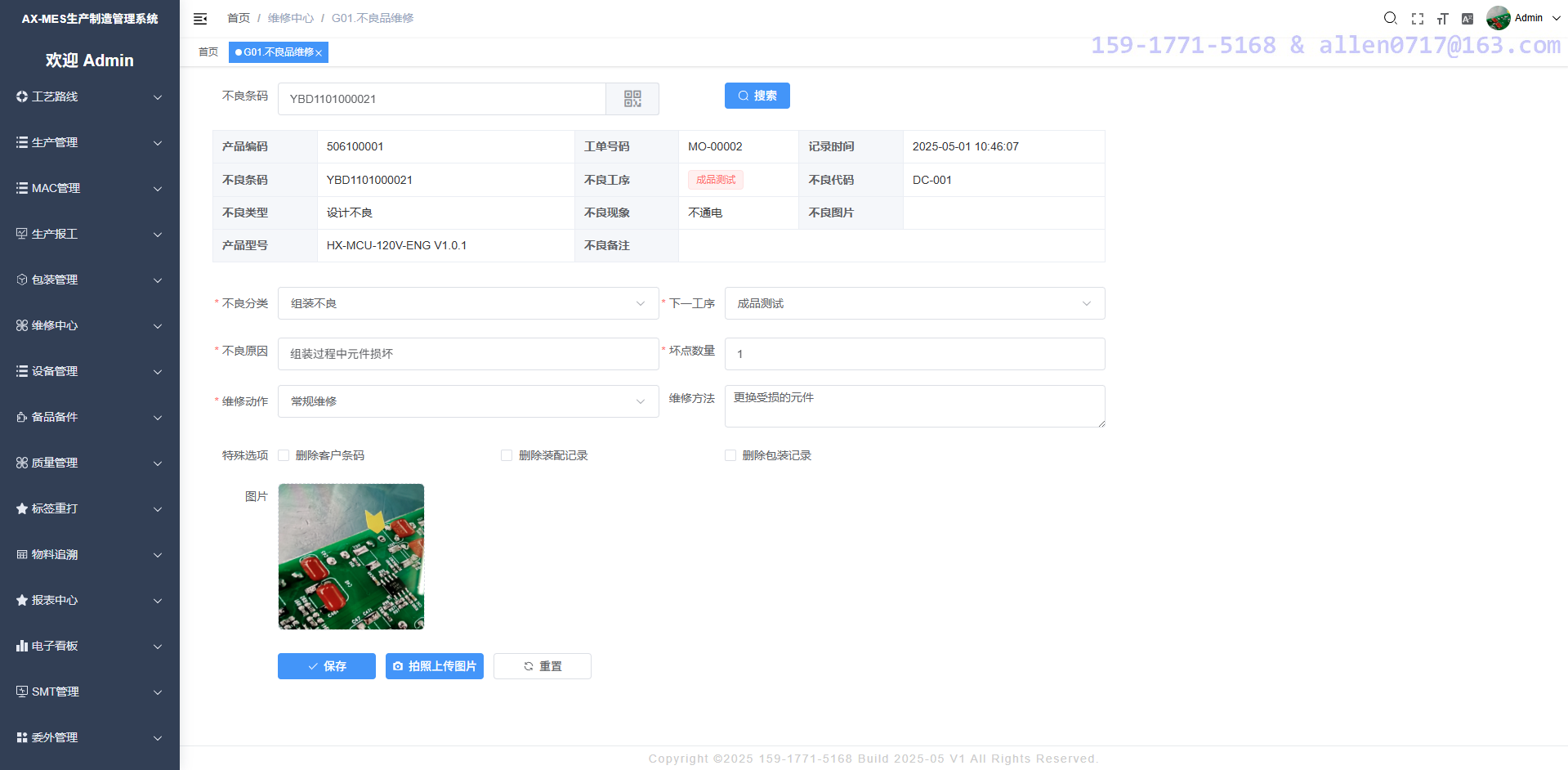系统支持在线记录不良,也支持测试电脑自动上传不良,可以在系统中定义允许重测次数,比如定义了最多重测3次,那么第一次与第二次发生不良的时候系统不需要维修,如果不良次数达到3次之后,系统会强制将该产品进入维修流程,完成修理之后才能继续下一步。