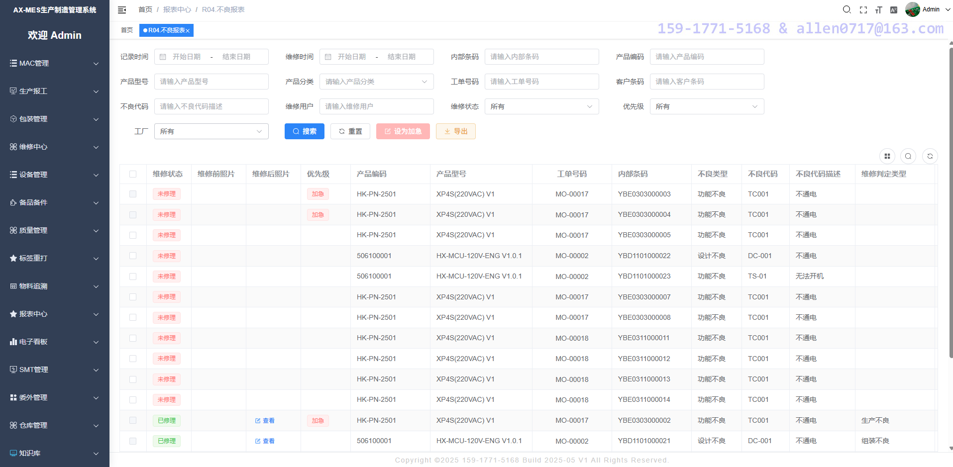报表中心--不良品维修报表