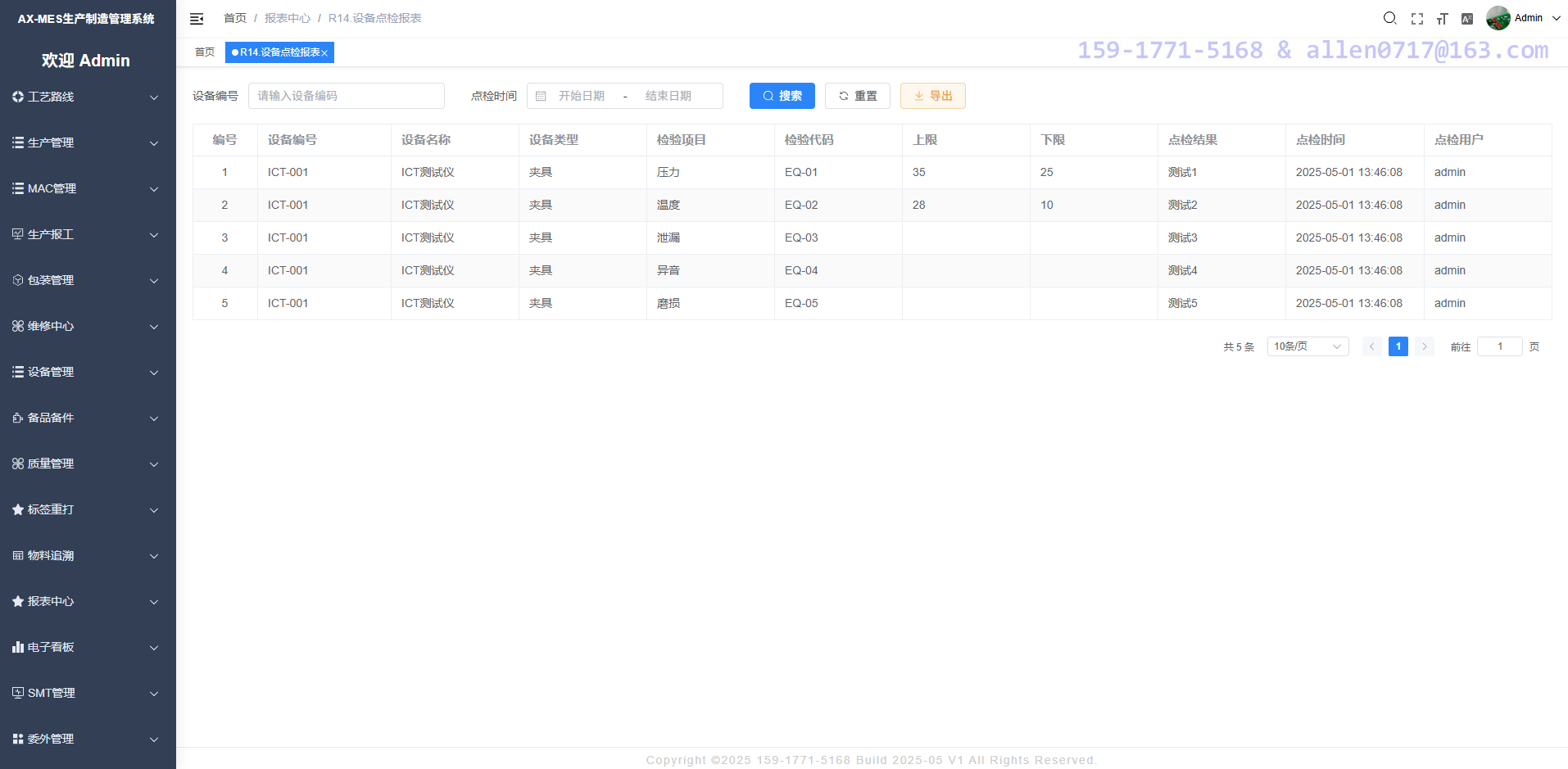 报表中心--设备点检报表