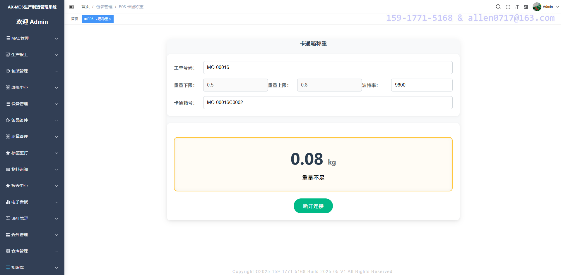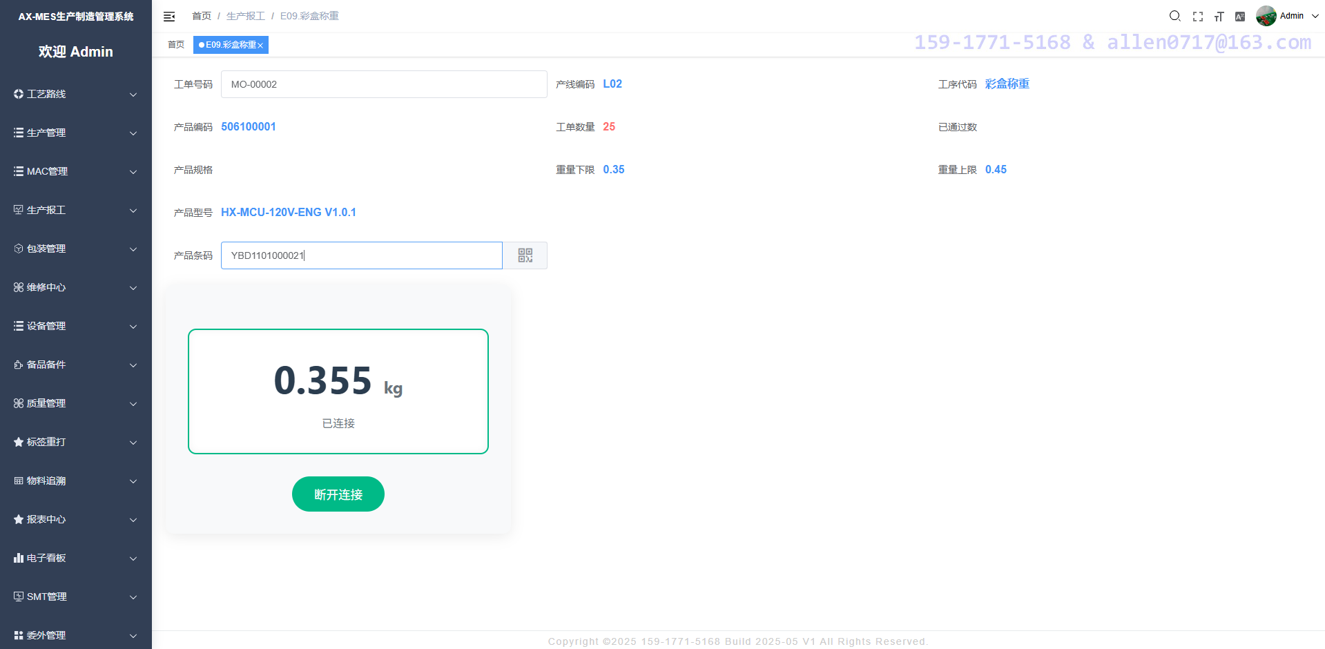 生产报工--彩盒称重