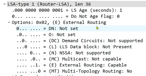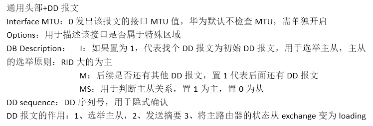 DD报文中的第一个字段就是发出该报文接口的MTU值,正常来说,OSPF邻居建立是需要要求两端接口的MTU值保持一致,否则无法建立,但是华为默认不检查MTU值,因此一般会显示为0(默认MTU为1500)(思科默认检查MTU)
