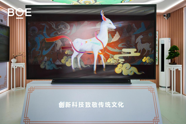 而在「屏」行对话展区全面展示了BOE(京东方)创新技术在文化艺术领域的应用,此次BOE(京东方)联合敦煌画院,以现代科技焕活中华优秀传统文化,依托BOE(京东方)8K超高清全真还原解决方案、裸眼3D显示、无损Gamma显示专利(专利号:ZL 2016 1 0214546.6)的画屏等,将灿烂的敦煌壁画艺术从敦煌带到观众眼前。不仅如此,多年来BOE(京东方)还与故宫博物院、中国国家博物馆、中国美术馆等众多文化机构展开深度合作,同时在全国多地打造数字艺术中心,有力推动文化艺术产业的数字化转型。