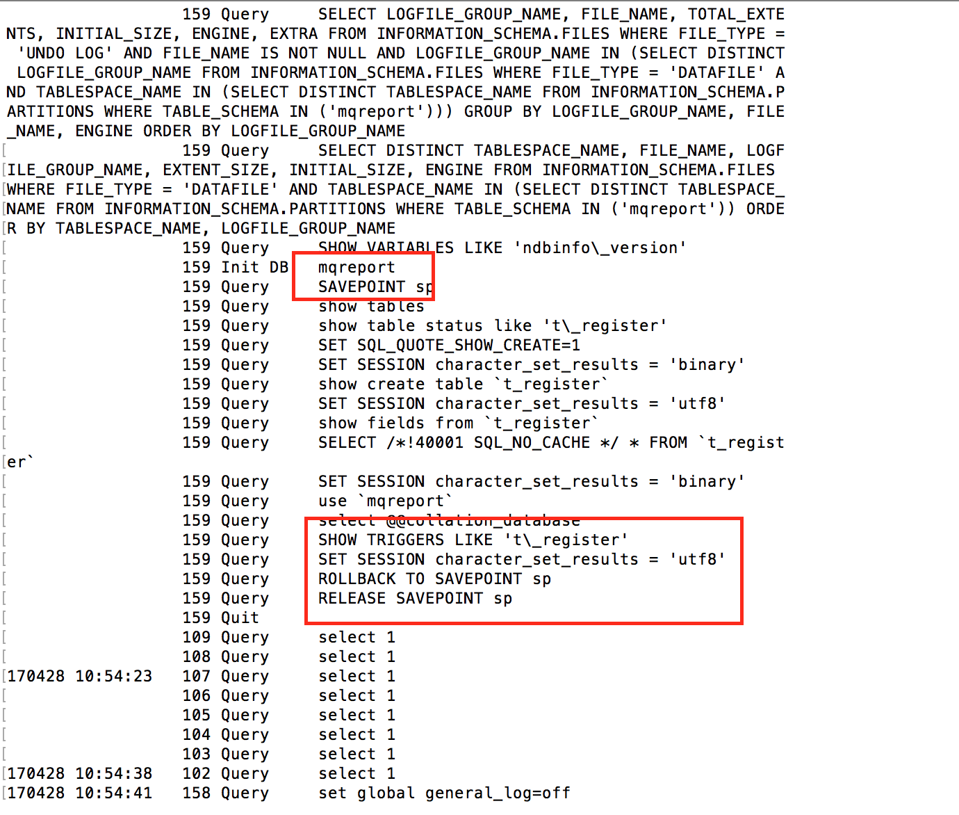 在备份之间同样的先FLUSH TABLES WITH READ LOCK,然后设置事务级别SET SESSION TRANSACTION ISOLATION LEVEL REPEATABLE READ,然后开启一个事务START TRANSACTION进行备份,这个时候备份的过程就很意思,它先创建了一个savepoint,然后把数据库里的表依次的进行备份,备份完成了之后又回滚到了之前的savepoint,来保证数据的一致性