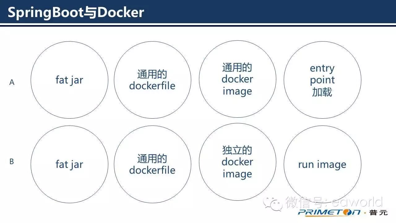 • A方案的核心是,把docker作为操作系统环境的交付基线,也就是不同的fat jar 使用相同的操作系统版本、相同的JVM环境。但对于docker image来说都是一样的。