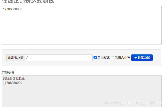 也可以用.*匹配出来,但是可以看到匹配到两个结果,因为*表示匹配0次或多次,.表示任意字符,空也是任意字符,所以有两个结果
